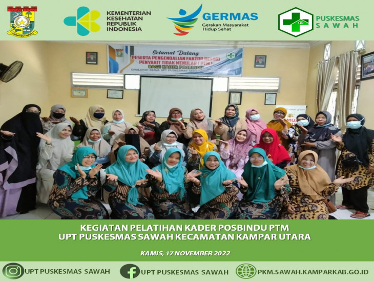 Pelatihan Kader Posbindu PTM dilaksanakan untuk meningkatkan peran serta masyarakat dalam pencegahan dan penemuan dini faktor risiko PTM di wilayah kerja UPT Puskesmas sawah . Sasaran utama kegiatan Posbindu adalah kelompok masyarakat sehat, berisiko dan penyandang PTM berusia 15 tahun ke atas. Kegiatan dilakukan di Aula UPT Puskesmas Sawah Kecamatan Kampar Utara Kabupaten Kampar.
